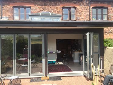 By remodelling the west side of the cottage we created a new sun room overlooking the garden with an open plan dining and kitchen area behind.